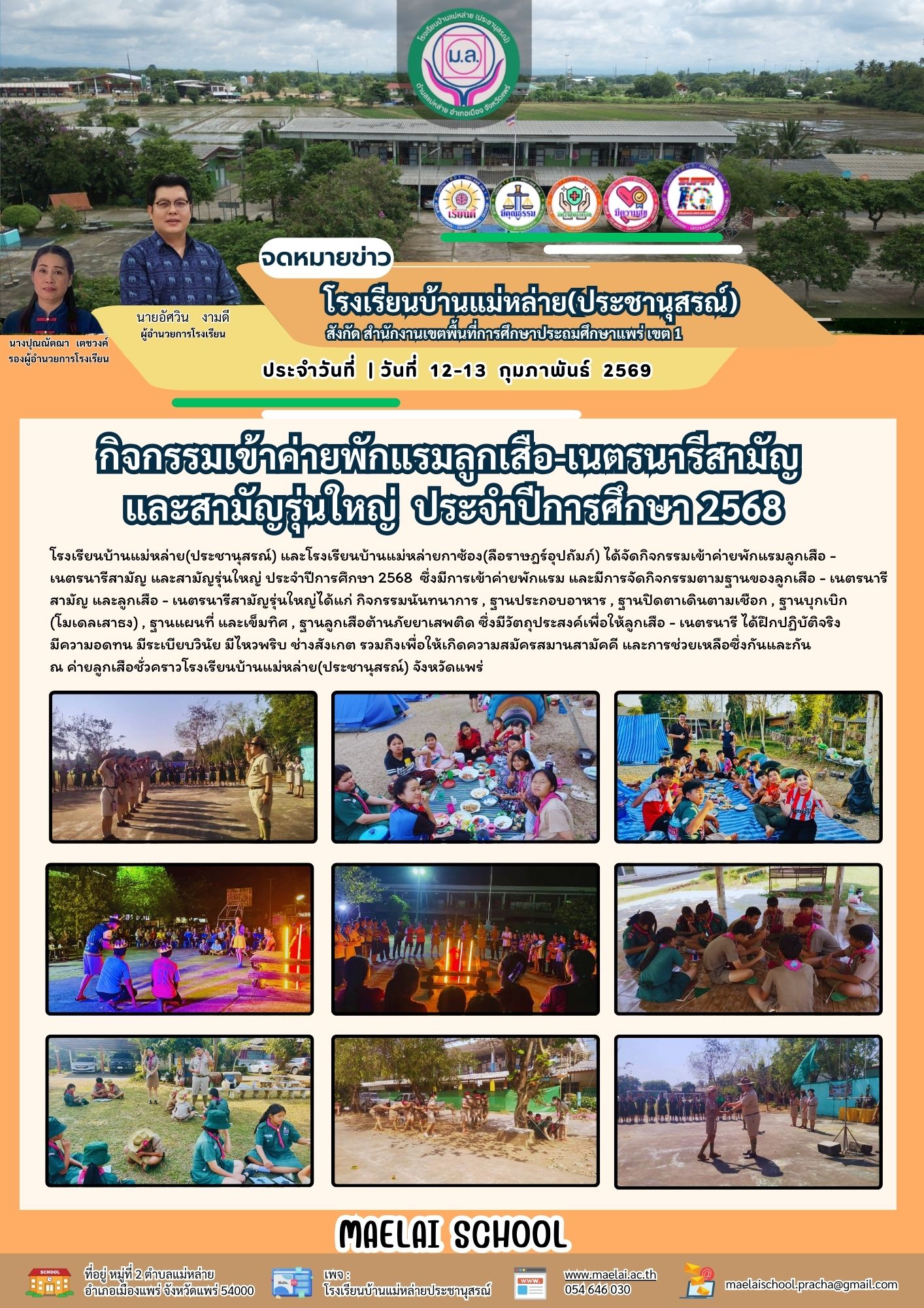12-13 กุมภาพันธ์ 2569 ณ ค่ายลูกเสือโรงเรียนบ้านแม่หล่าย(ประชานุสรณ์)